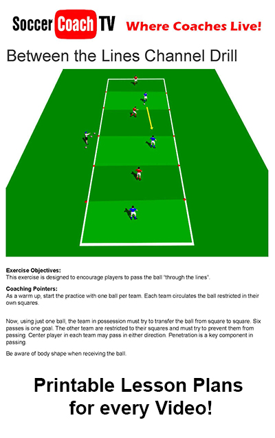 This exercise is designed to encourage players to pass the ball “through the lines”.