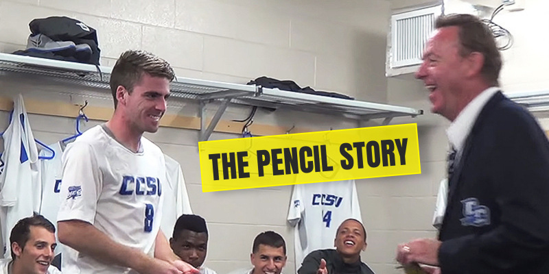 Team Talk in Locker Room using Pencils as an analogy for team strength in numbers. Take 12 pencils with you to the locker room or classroom. Invite on player in the group to stand before the team. Ask the player to take one pencil and try to break it in half, of course, the player can easily break the pencil.